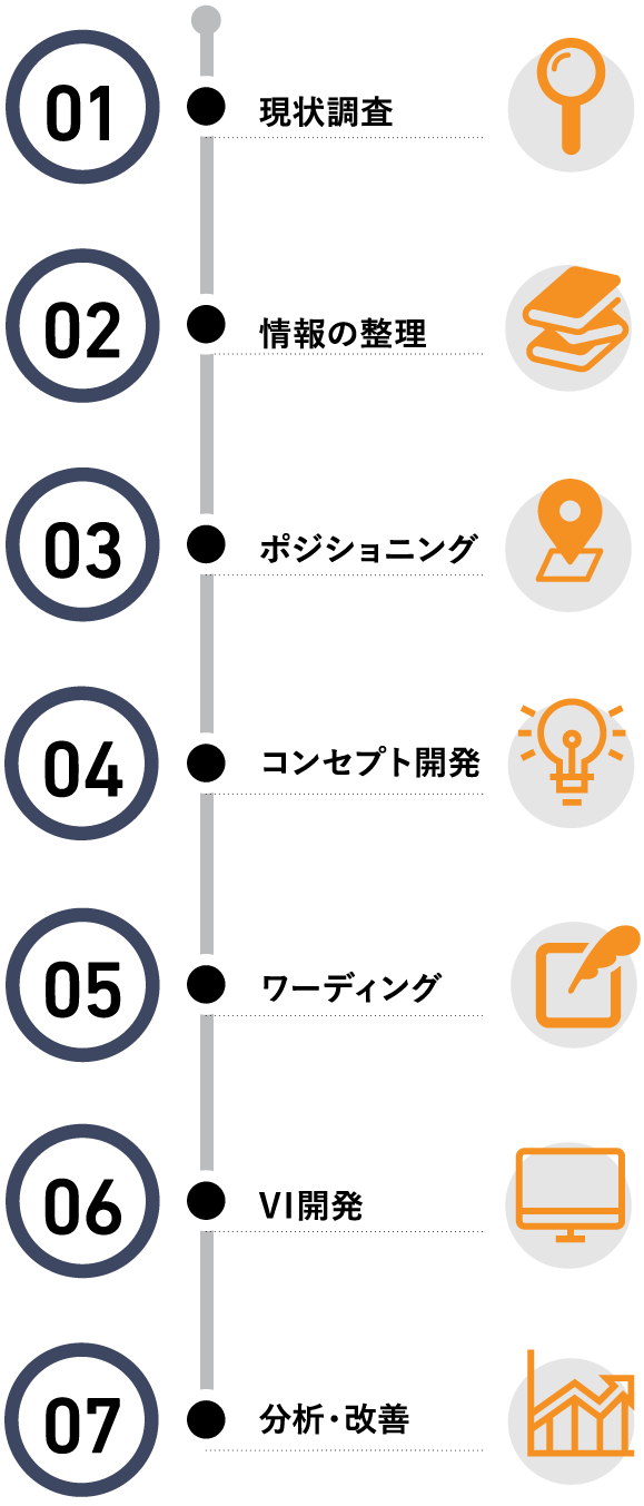今感じている事業の問題をブランディングという視点で改善するとともに、この先も選ばれ続けるために、強みや特徴、市場、競合、デザインをあらためて見直し、強いブランドを確立します。
